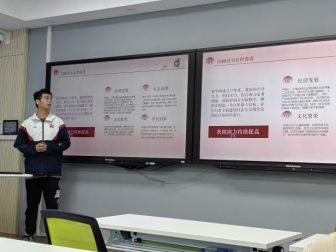 在班长熊惠峰的主持下,班会由视频引入,回顾在中国共产党的伟大领导和中国人民的接续奋斗下,新中国成立以来国家在经济、科技、文化等各方面取得的伟大成就。