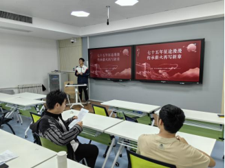 学习委员郑兴分享了陕西咸阳抗美援朝志愿军蔡兴海的英勇事迹。他以生动鲜活的故事为大家展现了这些奋斗者们卓越的成就和奉献的精神。同学们备受感动,眼神中闪烁了敬仰的泪花。