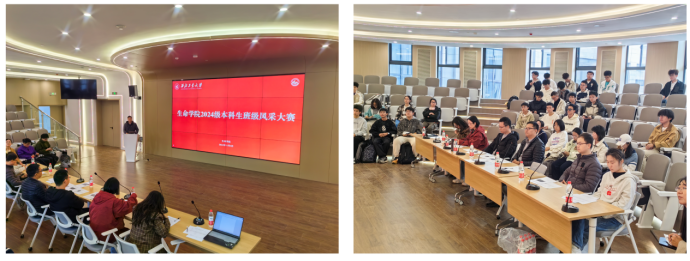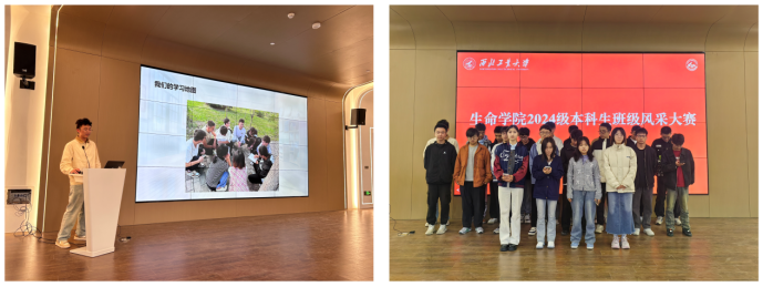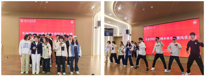 比赛分为班级文化建设汇报和风采展示两个环节。首先,各班代表通过PPT、视频等形式展示了入学以来班级文化及学风班风的建设成果,详细介绍了班徽、班旗、班服的设计理念,解读了班训、班规、班级口号的内涵。随后,各班通过视频剪辑、舞蹈串烧、合唱多种形式展现了班级风采,呈现出朝气蓬勃、积极向上的班级氛围,突显了生命学子昂扬向上的精神风貌。