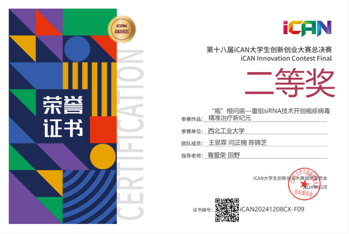 2024年12月8日,第十八届iCAN大学生创新创业大赛全国总决赛圆满落幕。yl7703永利集团学子在这场创新与智慧的竞赛中,凭借《“疱”根问底——重组siRNA技术开创疱疹病毒精准治疗新纪元》项目,勇夺全国总决赛二等奖!这是学院在该项赛事中取得的历史最高奖项,标志着学院创新创业教育迈上了新的台阶。