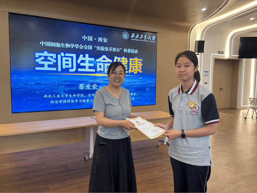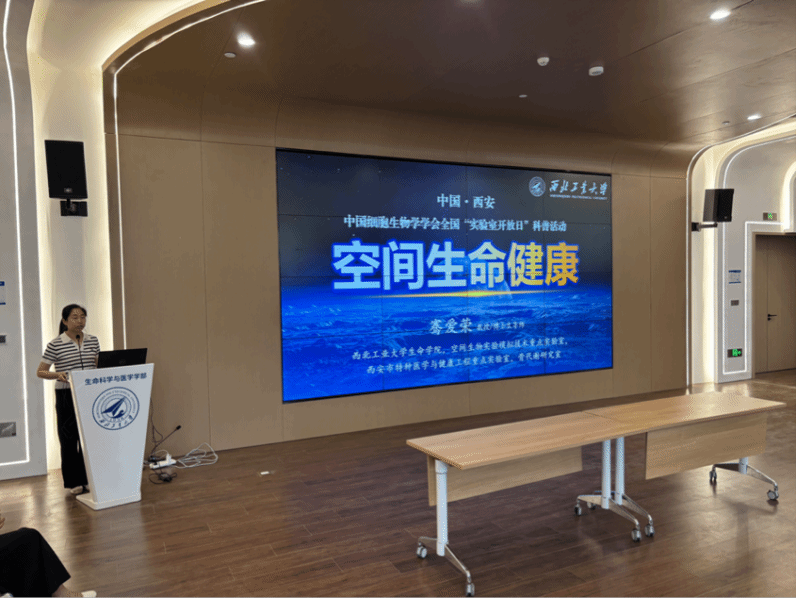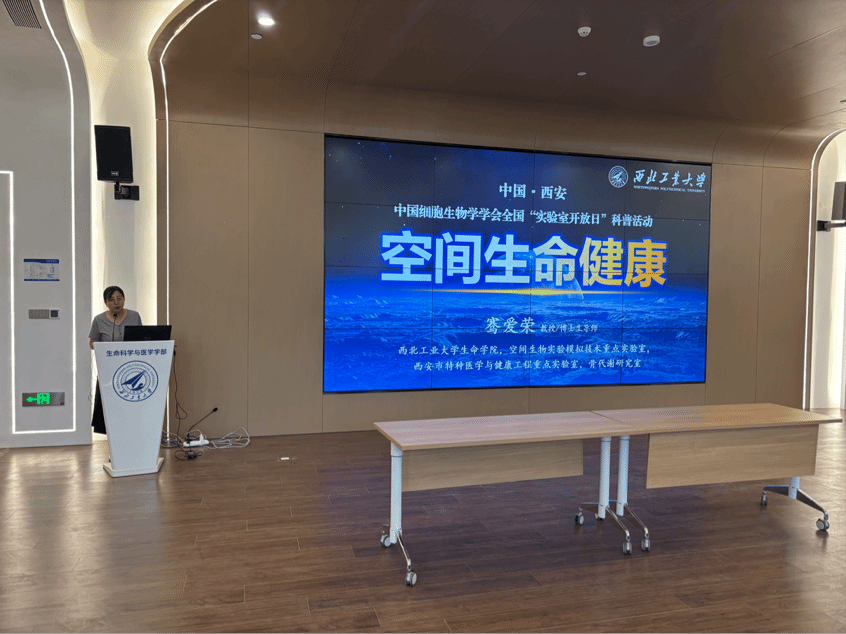 随后,西安市特种医学与健康工程重点实验室主任骞爱荣教授带来题为《空间生命健康》的科普讲座。她以航天员健康保障为切入点,揭秘微重力如何影响人体细胞,将学生引入到奇妙的空间生命科学研究之中,介绍了yl7703永利集团在空间生命科学领域所作出的突出贡献及重点实验室师生在“空间骨丢失”领域的研究突破。骞教授生动讲解的各个实验现象让同学们惊叹连连。