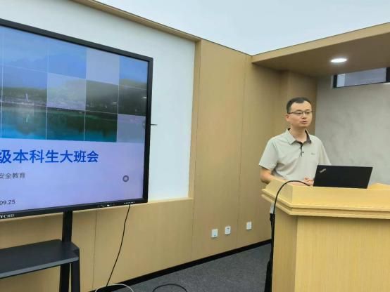 活动的最后环节,任磊旗以职业规划和安全教育为主题召开年级大班会。首先基于详实的数据,对学院近几届毕业生升学去向进行了深入的分析研判,梳理了国内外深造的整体趋势和主要流向院校,帮助同学们建立对升学形势的客观认知,为个人定位提供参考。接着,任磊旗系统讲解了如何进行科学的职业规划,引导同学们将升学目标与长远职业发展紧密衔接,并强调了现阶段提升综合素质、积累实践经历的重要性。时值国庆中秋假期临近,任磊旗最后着重开展了安全教育,从出行安全、防范诈骗、网络言行规范到诚信教育等方面进行了全面提醒,要求同学们时刻绷紧安全弦,确保度过一个充实、平安的假期,为后续的学习生活奠定坚实基础。
