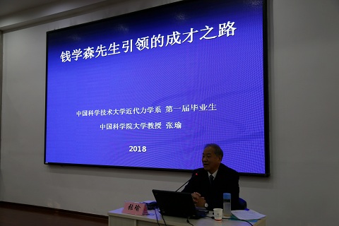 作为中国科学技术大学近代力学系第一届毕业生,张瑜教授在大学期间聆听了钱学森先生的授课、参加了其指导的小火箭研制科研活动,对他的教育思想、教育实践和伟大的爱国主义情怀有着深刻的理解和感悟。张瑜教授以“百人一院士,千人九将军”为引言,结合自己的亲身经历,讲述了钱学森先生亲自为我们制定教学计划,聘“科学院的大炮”(顶级科学家)为学生授课,聆听钱学森先生讲授“星际航行概论”课,钱学森先生亲自指导我们的科研活动及研制小火箭,以及钱学森先生崇高的人生观与世界观,为师生们展现了爱国知识分子的杰出代表钱学森先生的光辉形象。