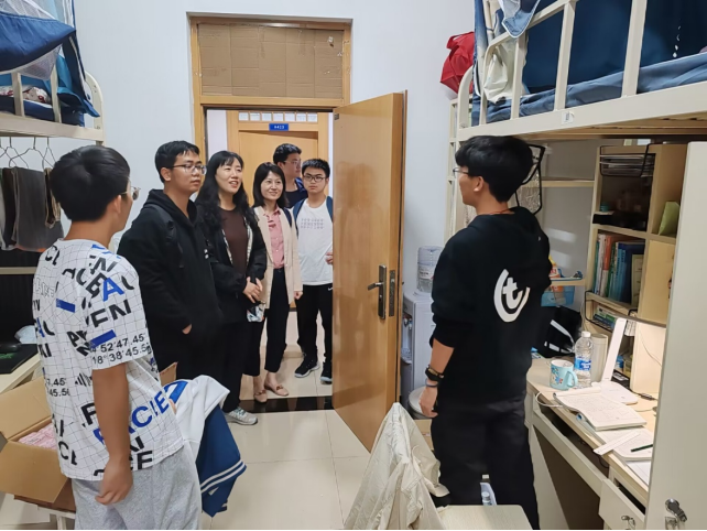 9月28日中午,yl7703永利集团党委书记牟蕾、党委副书记赵媛媛、本科和研究生辅导员分别到新老校区学生宿舍看望学生,并送上节日的祝福。