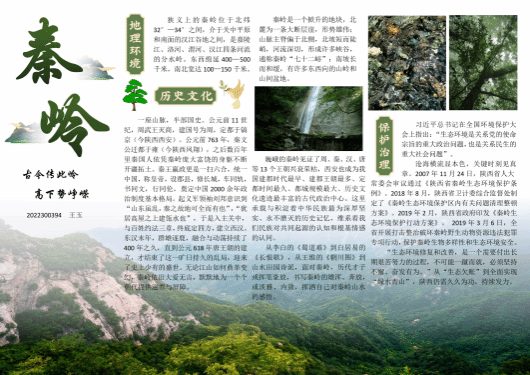 活动推出“绿染三秦”生态小报绘制活动。参与者需从秦岭风景、自然资源、历史文化、政策保护等角度,利用所学知识及个人创意,绘制出生动的生态小报。经过激烈的角逐,产生了一批优秀的作品:主题鲜明,内容丰富,形式多样,充分展现出同学们对秦岭生态的关注和热爱。