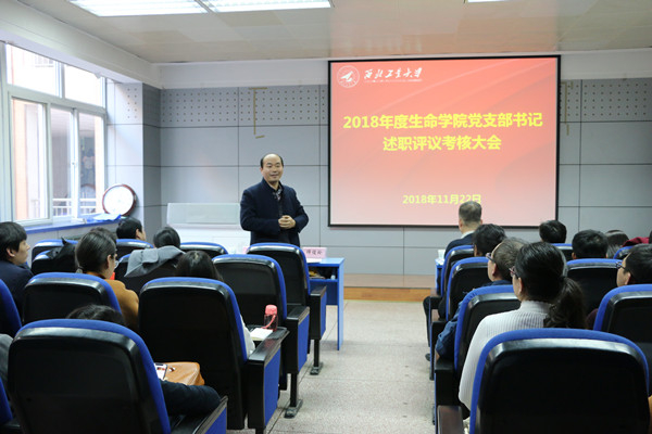 6位党支部书记分别从支部书记履职情况、特色和亮点、存在的问题及下一步努力方向等方面进行现场述职。各支部书记述职结束后,评委和参会同志进行现场提问、点评及打分。其中,生物学系党支部认真做好高校青年教师入党工作以及2016级硕士生党支部获得“三创三力”十佳优秀党支部受到了现场评委的高度评价。