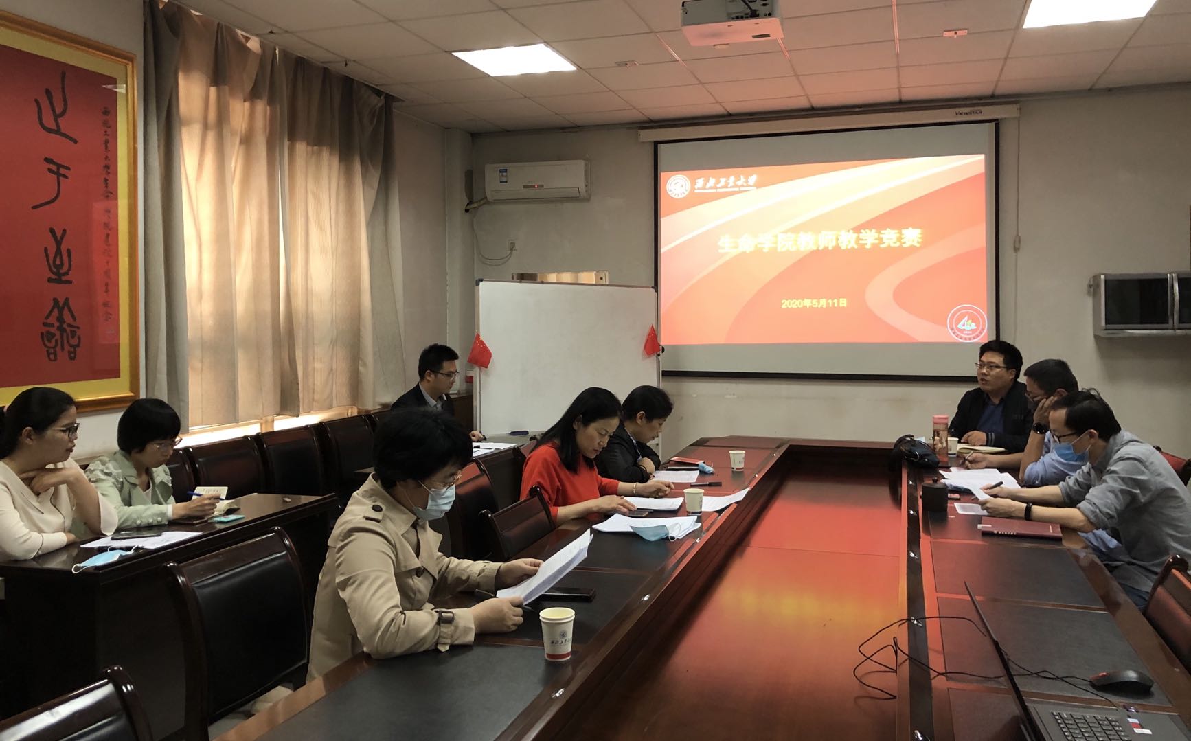 赛前5位教师精心准备,严格按照学校竞赛的标准,提交了5个学时完整的教学设计方案、5个学时相对应的教学节段PPT和教学大纲。学院为身处德国的葛老师提供竞赛平台以直播视频方式参加比赛。竞赛前由专家组为每位老师随机抽取一个PPT进行比赛。比赛现场,5位教师以模型展示、丰富的素材、生动的视频等展现课堂教学过程。随后参赛老师在45分钟内,结合本节段课堂教学实际、从教学理念、教学方法和教学过程等方面撰写了500字以内的教学反思。
