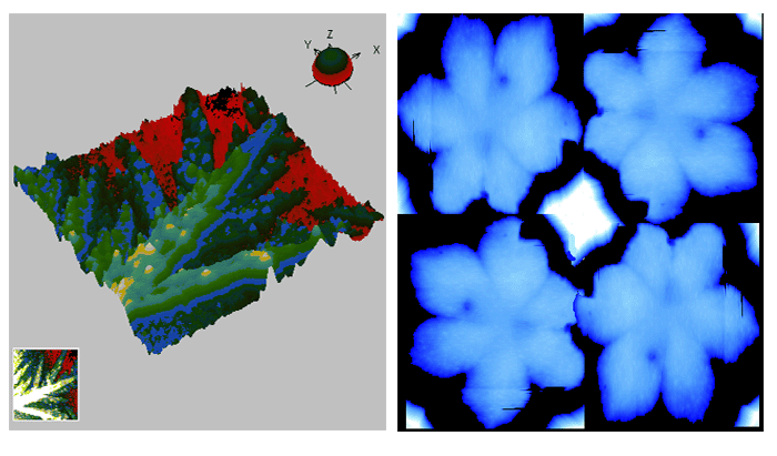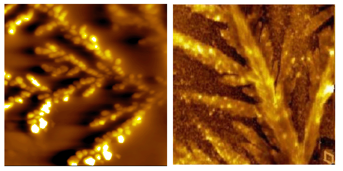 下图是原子力显微镜(Atomic force microscopy)具有纳米级成像分辨率,且样品处理简单,现场操作性好,既能在真空和大气下工作,也能在接近生理条件的溶液环境中直接成像。其皮牛顿级力分辨率,使得在单分子水平测分子间/内相互作用力或分子操纵成为可能。
