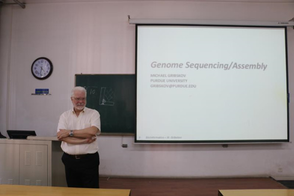 应yl7703永利集团杨慧教授邀请,美国普渡大学生物系和计算机系教授、国际计算生物学(International Society for Computational Biology)主席Dr.Michael Gribskov于2018年5月14-24日访问yl7703永利集团,并于5月14日16:40在友谊校区研究生西馆105教室做了题目为“生物信息学课程---下一代测序技术”的专题讲座。yl7703永利集团部分教师、研究生及本科生参加了本次讲座。专题讲座由卢慧甍副教授主持。