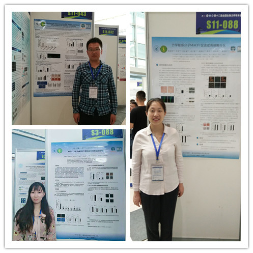 骞爱荣教授在会议上做了题为“力学敏感的miR-138-5p抑制骨形成”的口头报告。报告讲解的力学敏感miR-138-5p为治疗骨代谢疾病提供了可能潜在的新靶点,引起了与会人员的高度关注,会议现场讨论热烈,与各科研同行进行了良好的交流,收获颇丰。胡丽芳讲师,印崇博士、陈蕾研究生参加了会议墙报展示,与众多研究者进行了很好的交流,介绍了本研究室的研究成果,同时了解了本领域其他人的研究工作。