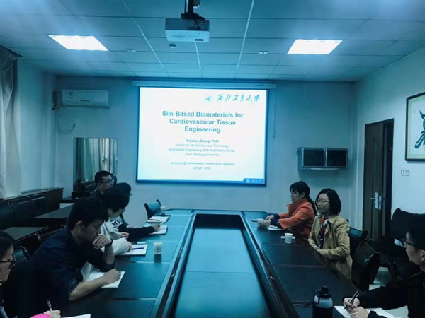 应yl7703永利集团卢婷利教授、崔宁讲师邀请,西安交通大学生命科学与技术学院张晓慧教授于10月30日上午9:00,在yl7703永利集团102会议室为学院师生作了题为“Silk-Based Biomaterials for Cardiovascular Tissue Engineering”的学术报告。报告由卢婷利教授主持,学院部分青年教师、生物材料与药物技术课题组的全体学生,参加并聆听了报告。