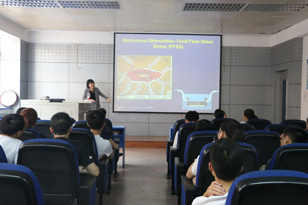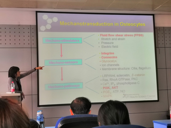 应yl7703永利集团续惠云教授邀请,2018年6月21日上午9点,美国德克萨斯大学健康科学中心Ashbel Smith姜欣(Jean X. Jiang)教授在西馆208会议室为学院师生作题为“Hemichannels in mechanotransduction and cancer bone metastasis, A journey from basic research to potential therapeutic application”(半通道在力传导和癌症骨转移中的作用,从基础研究到临床应用)的学术报告。学院部分教师及学生参加了此次学术报告。报告会由续惠云教授主持。