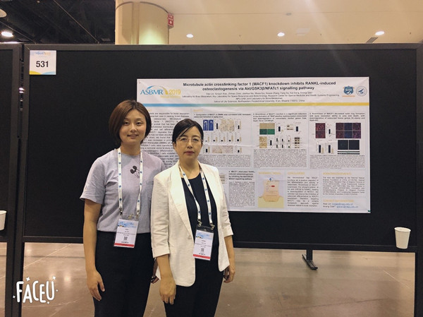本次会议中,陈志浩和张琰的会议摘要均被选为Plenary Poster,Plenary Poster汇报是美国骨与矿物质研究学会为了对高水平会议论文进行宣传和鼓励所专门设置,2019年年会所选中的约1200篇会议论文中,只有200篇被授予该资格。此外张琰的Plenary Poster还被选为Oral Poster在会场口头汇报,在1200篇Poster中,只有60篇被授予该资格。会议期间,骞爱荣教授团队的会议论文引起了众多专家学者的关注,骞爱荣教授与特拉华大学(University of Delaware)的Liyun Wang教授以及阿拉巴马大学伯明翰分校(University of Alabama at Birmingham)的Yiping Li教授展开了一系列的学术交流,针对双方的课题进展情况和课题组未来的发展方向进行了深入的讨论,达成了合作意向,为后续的学术合作奠定了基础。(作者/陈志浩;图/蔺枭,李迪杰,张琰;审核/骞爱荣,赵媛媛)