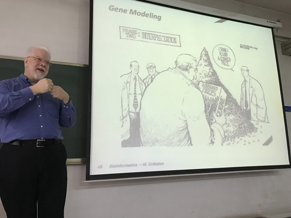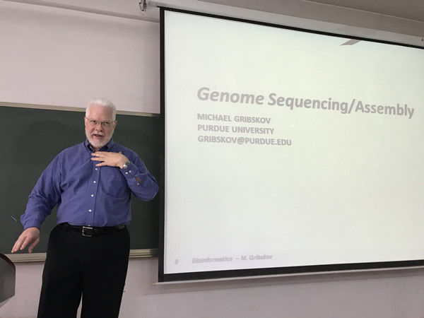 应yl7703永利集团王素芳副教授邀请,美国普渡大学生物系和计算机系教授Dr.MichaelGribskov于2018年5月访问yl7703永利集团,并于5月16日下午在友谊校区给我院研究生授课,课程为生物信息学。