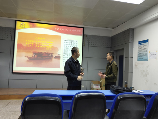 党委书记侯沛勇老师对本次会议进行了点评。他充分肯定了此次分享交流会的教育意义,表扬了支部党员认真开展思想理论学习的积极态度,并就做好支部下一步工作给出了建议,一是要认真学习贯彻习近平新时代中国特色社会主义思想和党的十九大精神,努力学习专业知识,做身边同学的表率;二是要积极创新支部党建方式,鼓励支部党员轮流开展党课教育;三是要强化支部组织建设,要求支部党员努力克服困难,提高支部服务能力和服务水平;四是要坚定理想信念,提高自身责任意识,做新时代的建设者和接班人。