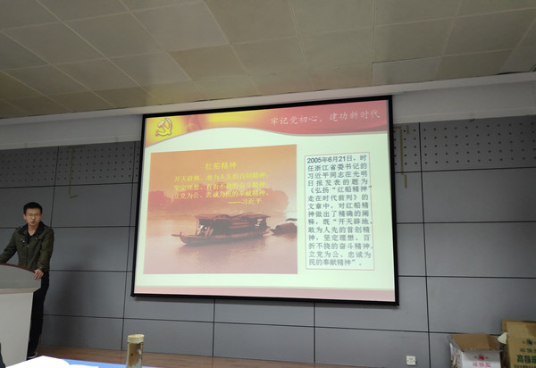 李斌同志围绕“牢记党初心,建功新时代”这一主题,从“探寻红色足迹,感悟入党初心”、“学习红船精神,坚定理想信念”、“聚焦时代发展,牢记历史使命”三个方面生动讲述了自己参加yl7703永利集团学生党支部书记赴上海、嘉兴两地开展实践教学活动的情况,带领支部党员重温建党历史、学习红船精神、了解时代发展变革,重点介绍了党的诞生历史,重点学习了红船精神,即“开天辟地、敢为人先的首创精神,坚定理想、百折不挠的奋斗精神,立党为公、忠诚为民的奉献精神”,李斌同志结合党的十九大精神,号召支部党员不忘初心、牢记使命,勇担时代之责、历史之任!