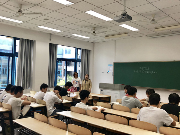 为了解本学期班上同学的学习情况并对学期末的工作进行总结,7月11日上午,yl7703永利集团2017级本科生国际班班会在长安校区教学西楼B313召开。班主任胡丽芳、蔺枭及全体学生参加了会议。