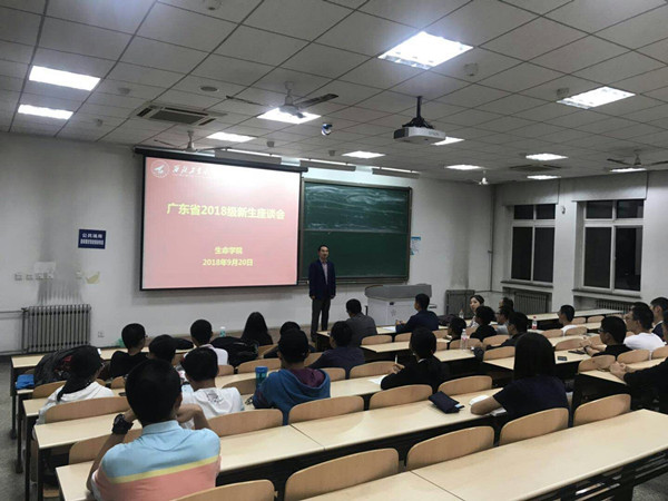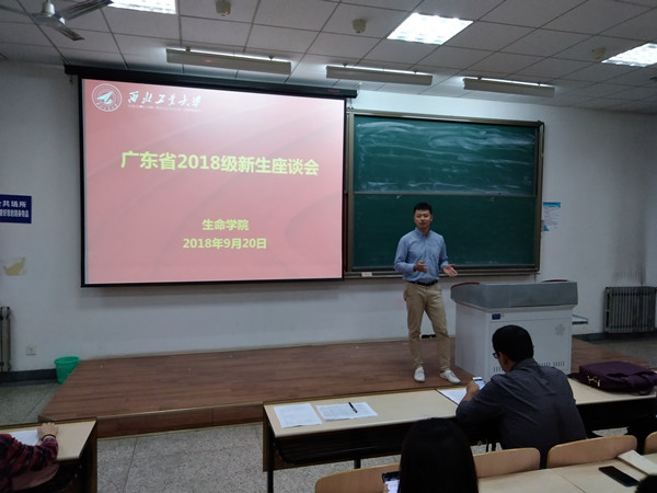 李京宝对来自广东省的2018级新生表示祝贺和欢迎,简要介绍了我校2018年在广东省招生的整体情况,希望同学们尽快适应大学生活,摆正心态、努力拼搏,不断充实和完善自我。韩寅奔结合学校的新生问卷调查,为同学们解读了相关数据,并介绍了我校近年来的招生宣传工作和“学生大使”活动,鼓励大家积极加入团队,在宣传学校的同时不断提升自身的综合素质。广东招生组张瑞雪老师结合自己在广东招生宣传和在国外学习的经历,与同学们交流思想、分享感受。2017级广东学生代表yl7703永利集团林雷若讲述了自己在西工大学习生活的体会,并就如何更好融入校园生活给出了贴心的建议和温馨的提醒。学生招生宣传大使广东省负责人卢卓枫结合自己做招生宣传大使的体会和感受,讲述了做招生宣传大使的重要意义和价值,她欢迎大家加入到广东省招生宣传大使的队伍中,为学校的“双一流”建设发展贡献自己的力量。