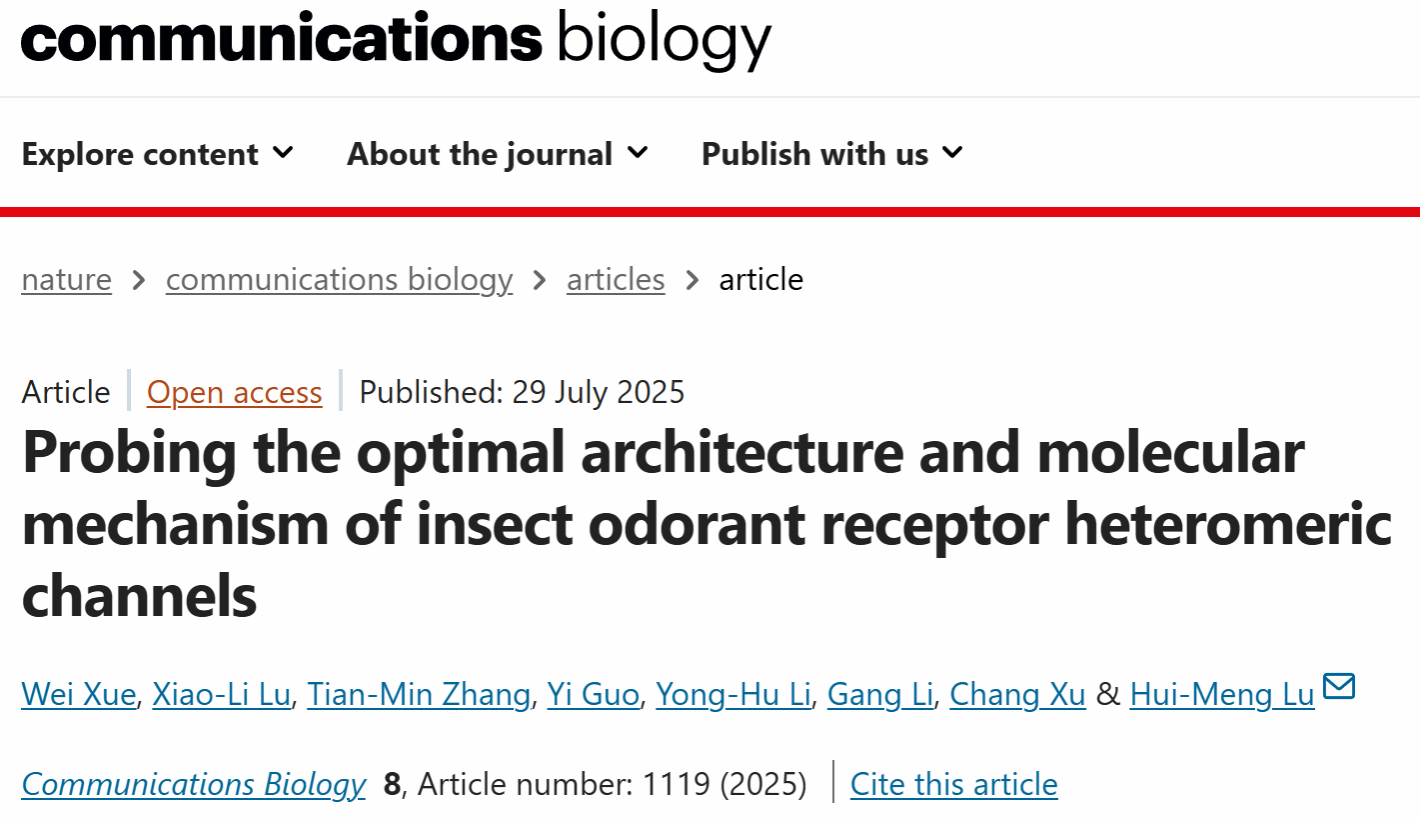 日前,yl7703永利集团卢慧甍副教授课题组在Nature旗下期刊《Communications Biology》(中科院一区TOP)发表论文“Probing the optimal architecture and molecular mechanism of insect odorant receptor heteromeric channels”。