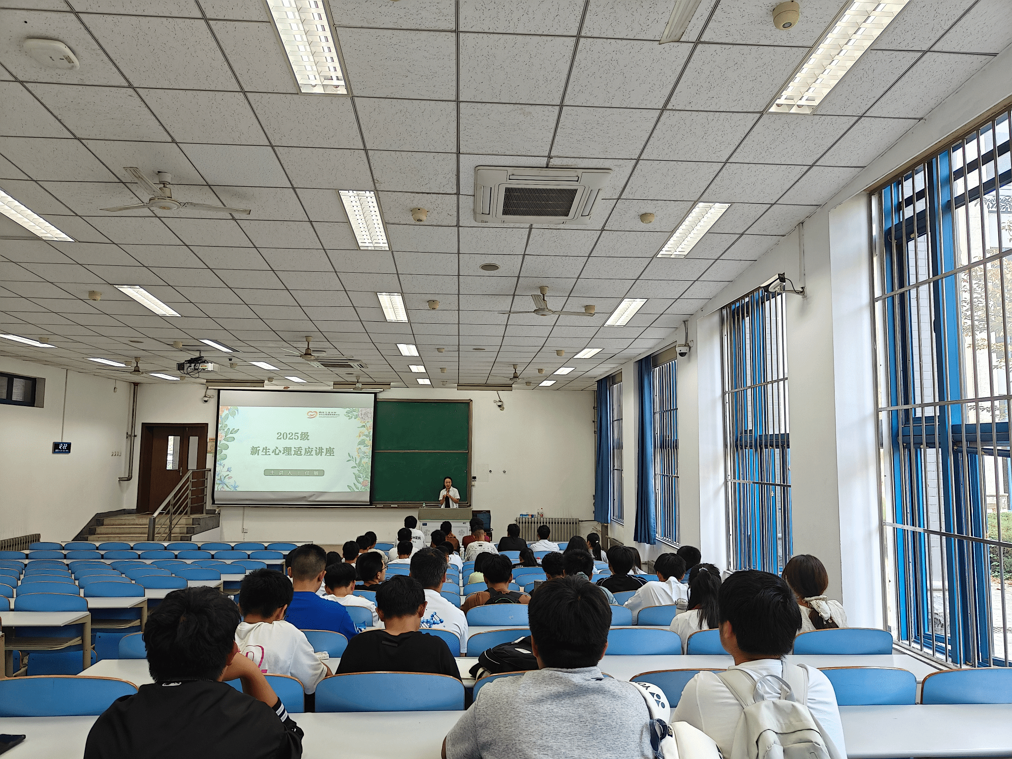 讲座中,学院的任丽老师围绕“适应与挑战”、“新生心理测评”和“心理适应调试策略”三大核心板块展开专业且细致的讲解。