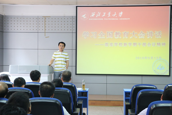 9月12日上午,yl7703永利集团在西馆XA208召开全体教职工大会,学习习近平总书记在全国教育大会上的重要讲话,落实学校2018年暑假学习研讨会暨新学期干部大会精神。会议由学院院长仓怀兴主持。