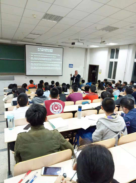 呼延霆老师向同学们讲述了Gunga教授与yl7703永利集团近12年的科研、教学等方面交流合作情况。呼延霆老师介绍Gunga教授不仅是我校聘请的客座教授,而且还连续依托我校两次入选国家外专局“高端外国专家项目”,从2006年开始就为我校的研究生和本科生讲授极端环境生理学课程,该课程获得我校优秀教学成果一等奖2项,课程教材于2015年在Elsevier出版社出版,并与yl7703永利集团商澎教授团队合作编译了该书的中文版本,于2018年在科学出版社正式出版。通过呼延霆老师的介绍,同学们了解到Gunga教授在空间医学、血液和心血管生理学、肾脏生理学和极端环境生理学等多个领域都建树颇深,更是国际知名的“航天医学”和“极端环境生理学”专家。