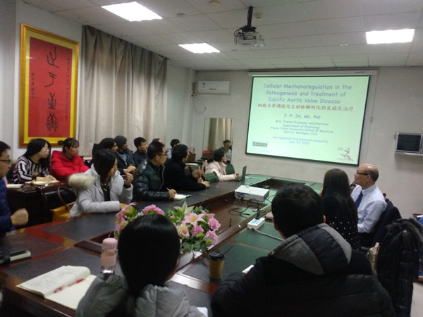 应yl7703永利集团骨代谢研究室骞爱荣教授邀请,美国韦恩州立大学金建平教授和美国西北大学黄其全教授于2018年12月27日至2019年1月1日期间访问yl7703永利集团。2018年12月29日上午,金建平教授在我院做了题为“Cellular Mechanoregulation in the Pathogenesis and Treatment of Calcific Aortic disease”的讲座。本次会议由骞爱荣教授主持,美国西北大学黄其全教授出席了本次会议。yl7703永利集团相关专业的青年教师,博士,硕士等聆听了本次报告。