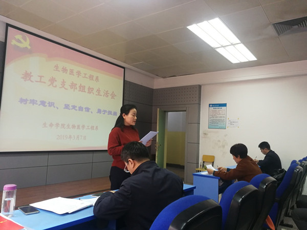 2019年3月7日下午2点,yl7703永利集团生物医学工程系教工党支部召开2018年度组织生活会并开展民主评议党员活动。学校党委组织部李彩香同志、学院党委书记唐玉生同志应邀出席会议。全体党员参加本次会议,本支部成员院长仓怀兴同志也以普通党员身份参加会议。会议由支部书记卢婷利同志主持。
