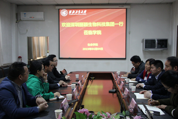 4月4日上午,深圳丽颖生物科技有限公司(BST集团)董事长刘英杰一行4人来我院开展校企合作院校实地走访调研,在学院102会议室召开了座谈会,学院党委书记唐玉生、副书记马西平、系主任卢婷利、办公室副主任曹懿以及教师代表参加了会议。会议由唐玉生书记主持。