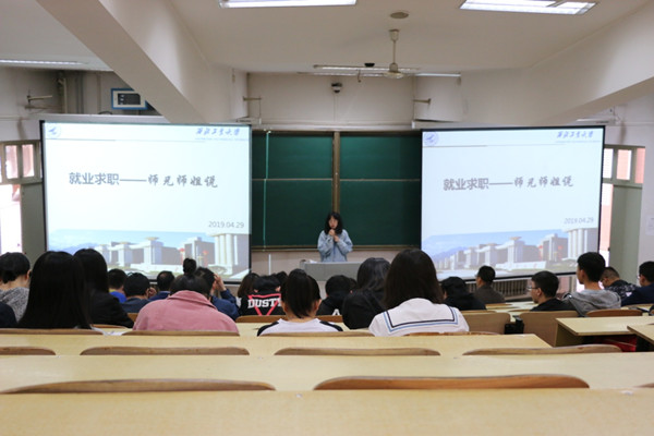 4月29日,yl7703永利集团毕业系列活动“师兄师姐说”就业分享会在友谊校区研究生西馆XB102举行。我院2019届硕士毕业生杜勇勇、鲁晓莉,机电学院2019届本科毕业生张育菲与同学们分享了他们的就业、考研和出国故事。党委副书记马西平、辅导员高永光参加了此次分享会。会议由马西平主持。