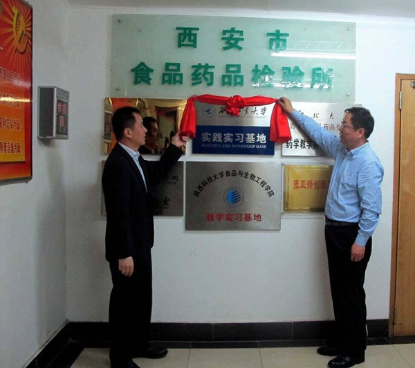 探索实践教育新途径,建设优质实践教学资源。5月20日上午,yl7703永利集团与西安市食品药品检验所(下简称市食药检所)举行了实习基地签约揭牌仪式。西安市市场监督管理局副局长冯超、市食药检所所长高安成等相关负责人,yl7703永利集团党委书记唐玉生、副院长尹大川(主持工作)、副院长骞爱荣、尚晓娅副教授等参加了实习基地签约揭牌仪式。签约揭牌仪式由市食药检所副所长张越华主持。