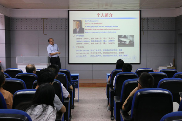 5月27日下午,yl7703永利集团邀请理学院应用化学系主任、无人系统技术研究院智能材料与结构研究所负责人顾军渭教授来院在研究生西馆XA208作了《聚合物基功能复合材料的设计构筑及性能调控》的专题报告。报告会由yl7703永利集团生物学系主任师俊玲教授主持,yl7703永利集团部分师生参加了报告会。