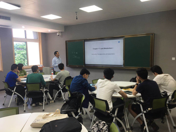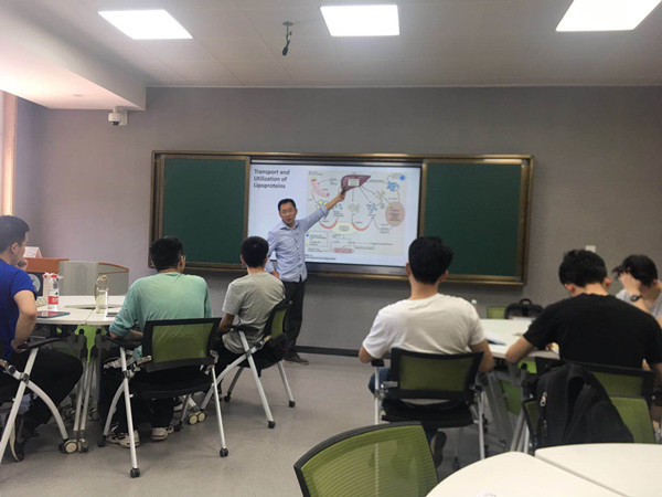 朱昌棋对知识进行深入浅出的讲解,并不时通过提问的方式引导学生思考,展开课堂讨论,使同学们对知识有更深刻的理解和掌握。课后,通过布置思考题的方式,引导学生对课本及相关知识进行自学,锻炼学生检索知识及解决问题的能力。此外,朱昌棋利用课间时间与同学们交流留学相关事宜,帮助学生做好学业和职业规划,使在座学生受益匪浅。(文/图:田野;审核/骞爱荣,赵媛媛)