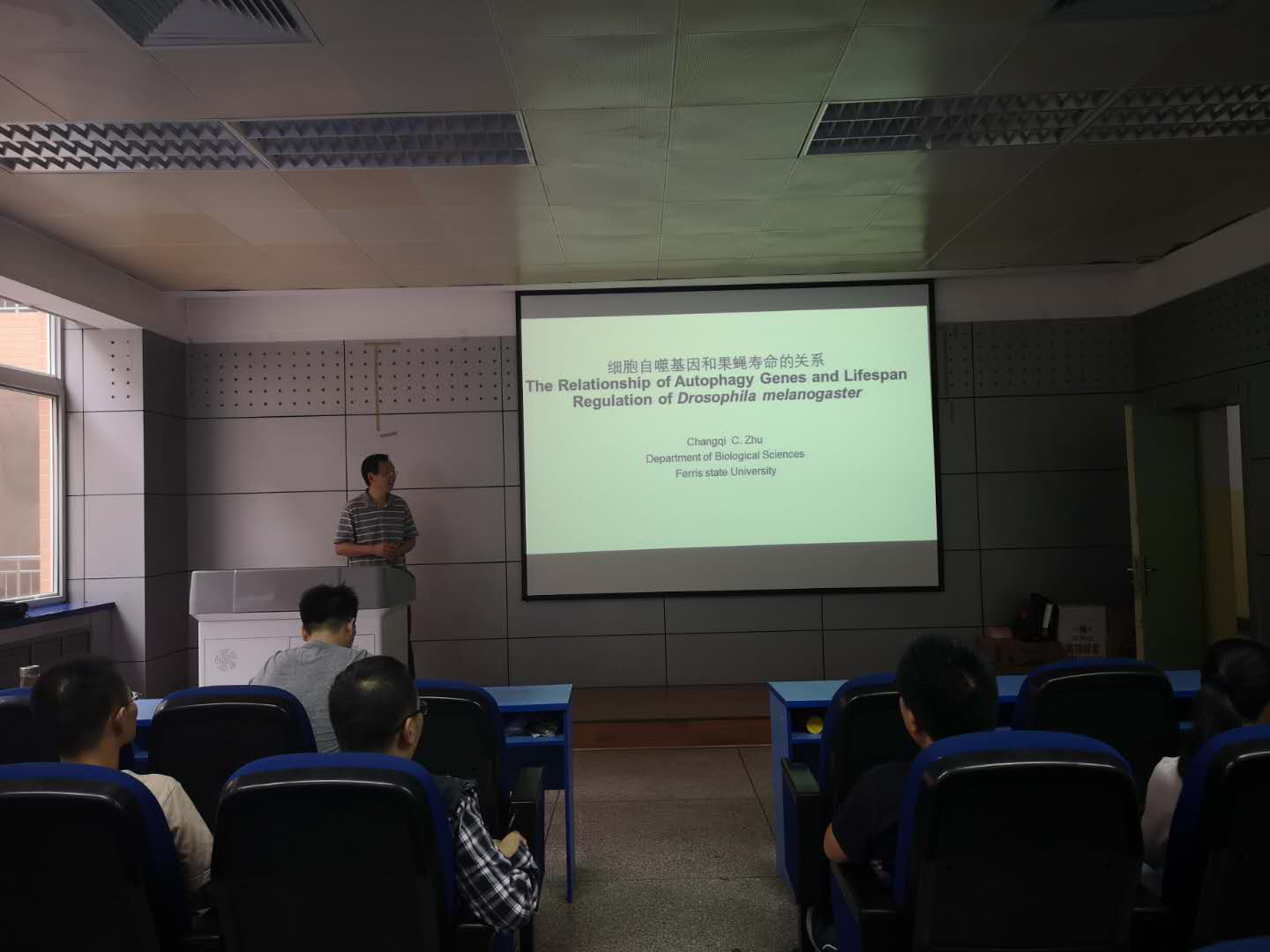 应yl7703永利集团教授骞爱荣的邀请,FerrisStateUniversity生命科学系教授朱昌棋于6月19上午9:00在西馆XA208会议室做了题目为“细胞自噬基因与果蝇寿命关系”的学术报告。报告由骞爱荣主持,yl7703永利集团部分教师、博士和硕士研究生参加了此次会议。