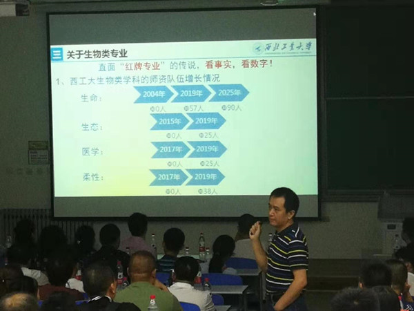 尹大川介绍了yl7703永利集团专业设置、学科建设、师资力量等情况,重点向各位新生及家长讲解了生物技术专业的发展现状及未来前景,加深了各位新生及家长对生物技术专业的了解,也增强了他们对yl7703永利集团的归属感、认同感和荣誉感。