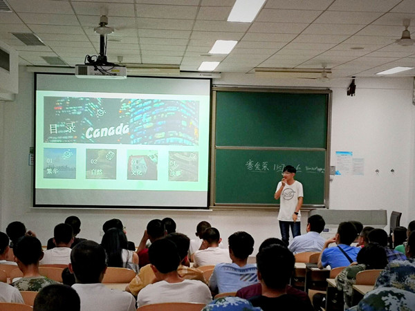 张世龙同学代表参加多伦多大学暑期项目的同学介绍了交流学习期间的所见所感。他介绍了多伦多大学的简要情况以及先进的基因和药物研究实验室等,同时展示了多伦多的人文历史以及城市的多元文化,均令人留下深刻印象。