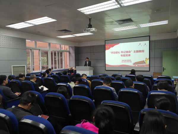 2019年10月22日下午,yl7703永利集团党委书记唐玉生为学院全体教职工党员讲“不忘初心、牢记使命”专题党课。学校第四巡回指导组郭经华老师参加。