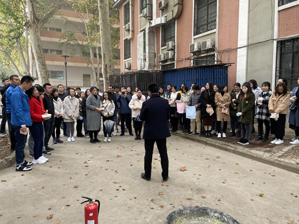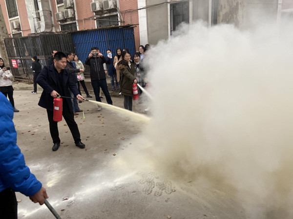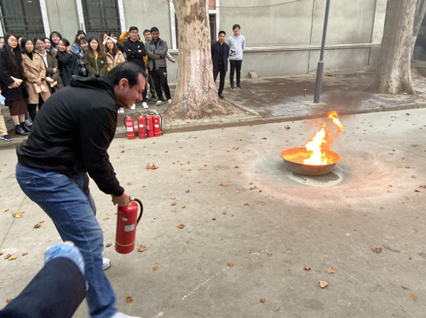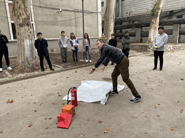 随后,保卫处扈伟老师为师生详细讲解了灭火器、灭火毯、灭火球等消防器材的特点及用途,并进行现场演示,各个实验室的安全员及老师们也在认真学习后亲自使用灭火器扑灭火源,进一步提高消防技能。
