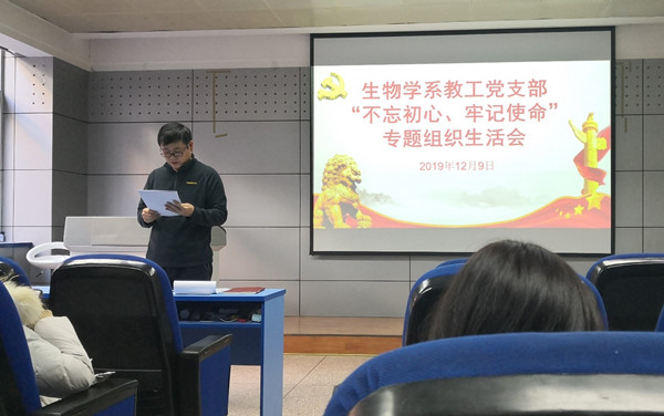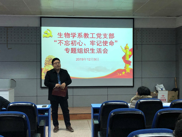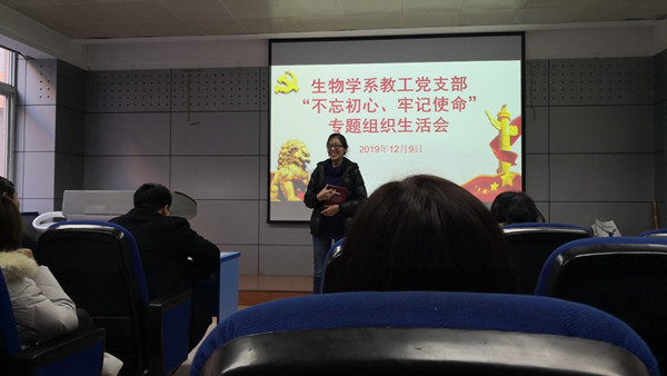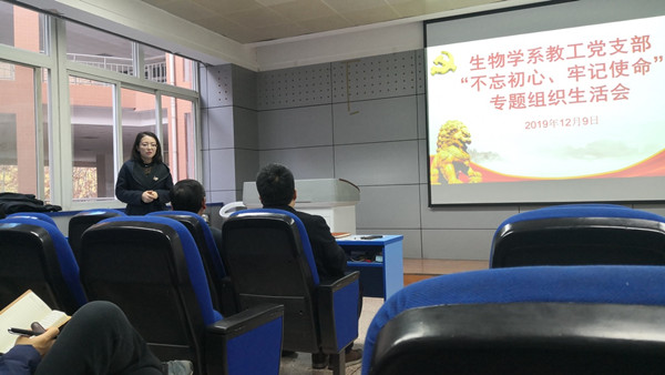 2019年12月9日下午,yl7703永利集团生物学系教工党支部全体党员在西馆XA208召开了“不忘初心、牢记使命”专题组织生活会。