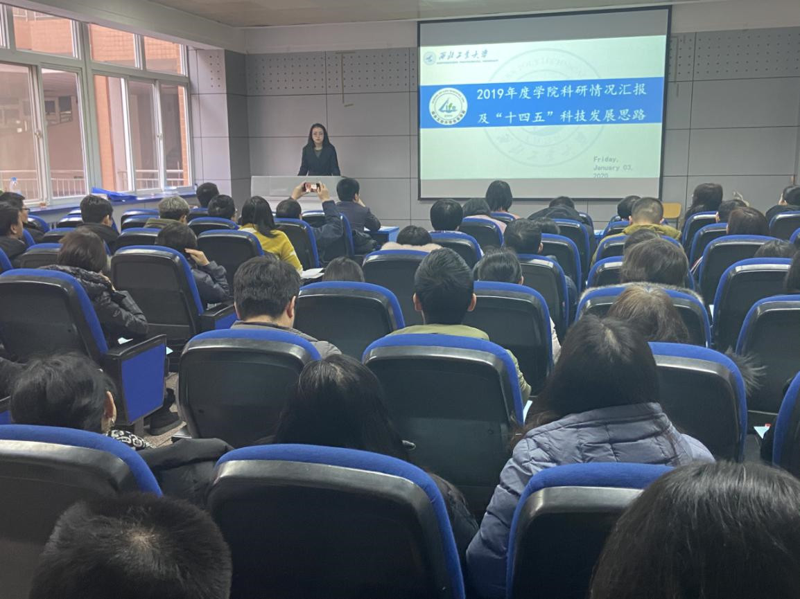 副院长杨慧介绍了2019年度学院科研情况及“十四五”科技发展思路,结合科研项目、科研成果、科研队伍三大方面,对未来拟培育的国家级项目、人才、成果和平台建设进行了详细介绍,并介绍了学院研究生培养工作计划。