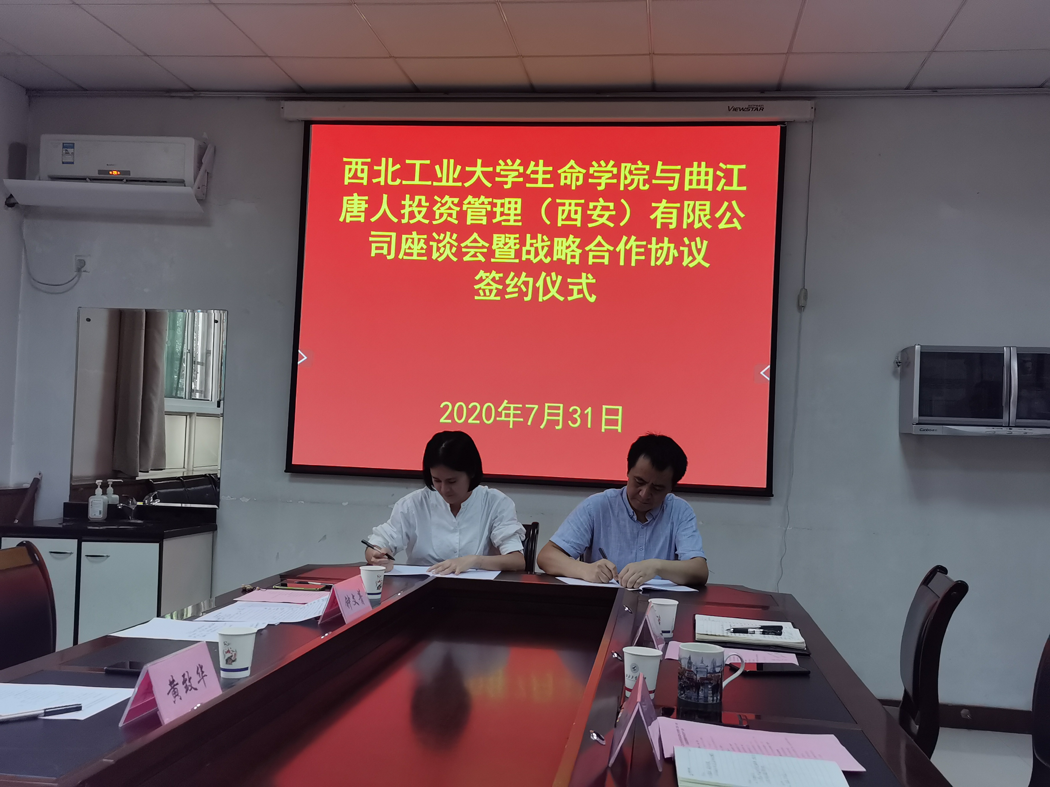 7月31日下午,yl7703永利集团与曲江唐人投资管理(西安)有限公司座谈会暨战略合作协议签约仪式在yl7703永利集团102会议室举行。曲江唐人投资管理(西安)有限公司董事长黄致华、副总经理钟文菁、投资经理徐珊、yl7703永利集团院长尹大川、副书记(主持工作)于辉、副院长牛卫宁、学院教授骞爱荣等出席签约仪式。签约仪式由骞爱荣主持。