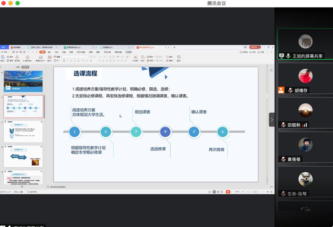 9月1日中午,教务处注册中心王旭老师在腾讯会议进行在线选课指导,她分别从选课流程、选课重要关注点、关于退课、一些选课的典型案例等几个方面为同学们生动讲解了在选课过程中尤其需要关注的问题。