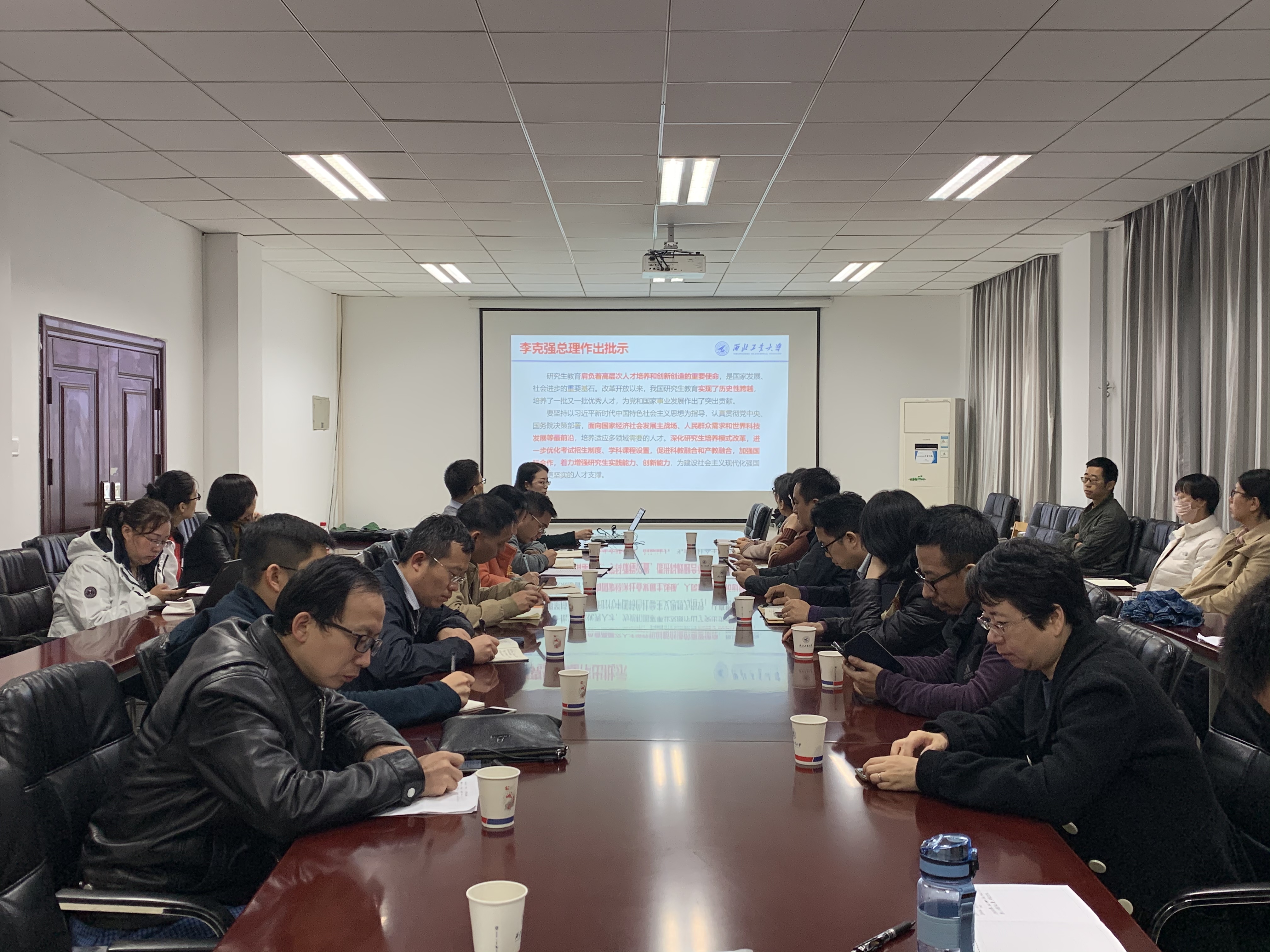 10月15日上午,yl7703永利集团组织研究生导师召开了专题学习研讨会,学习贯彻落实全国研究生教育会议精神。学院领导班子成员和全体硕博导师参加了学习研讨。会议由副院长杨慧同志主持。研究生院副院长宁昕同志、研招办副主任王会同志参加学习研讨。
