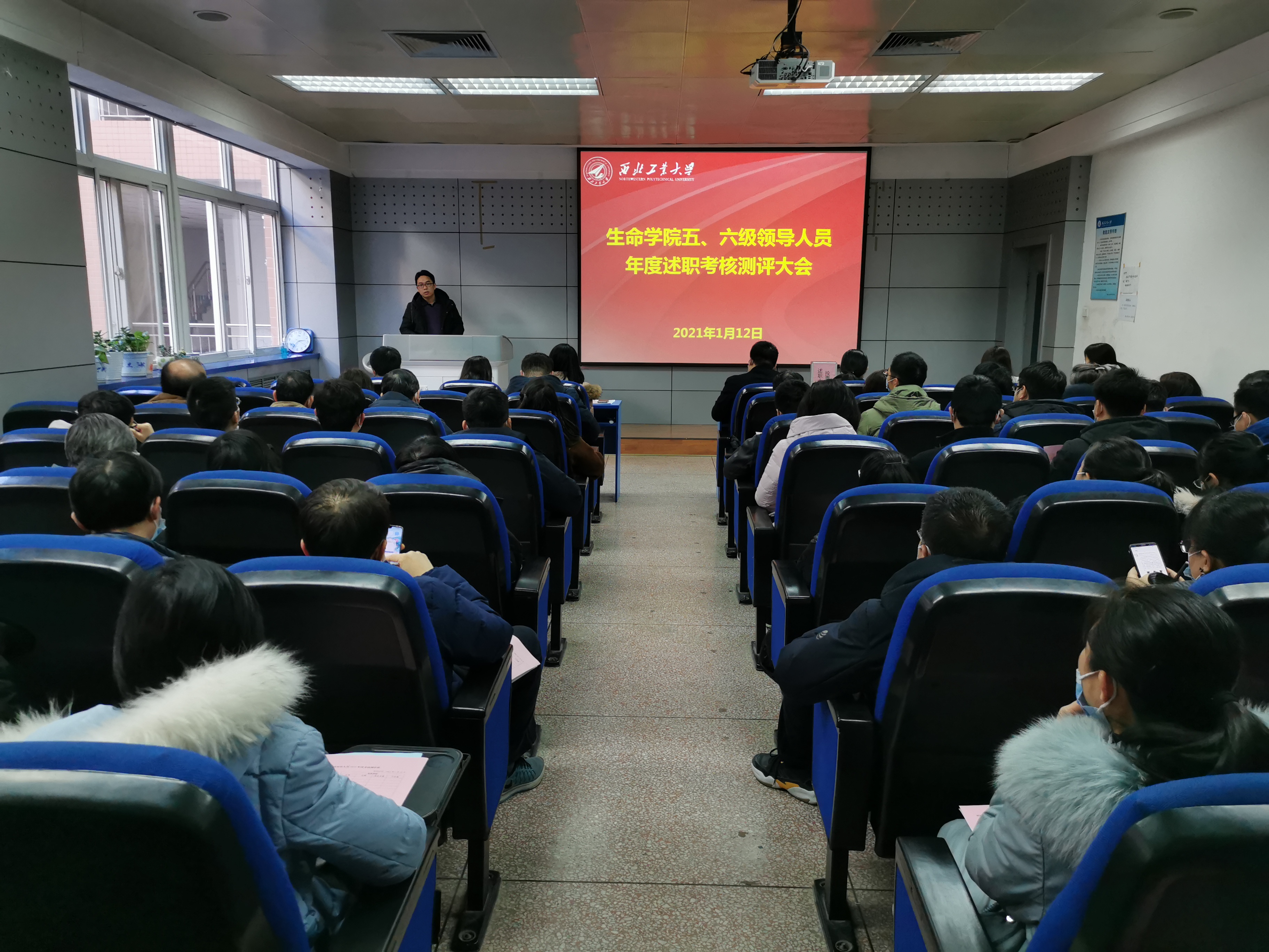 1月12日,yl7703永利集团召开五、六级领导人员年度考核述职测评大会暨教学委员会第二届委员换届选举大会,全体教职工参加了会议,会议由党委副书记于辉主持。