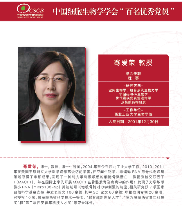 yl7703永利集团骞爱荣教授被评选为细胞生物学学会2021年百名优秀党员,骞爱荣教授积极响应中国细胞生物学学会第十二届理事会党委号召,坚定“四个自信”、做到“两个维护”,坚持扎根生命科学领域基础研究,坚定科技创新自信,不忘初心、牢记使命,未来亦将继续奋斗、砥砺前行。(文:陈志浩;审核:赵媛媛)