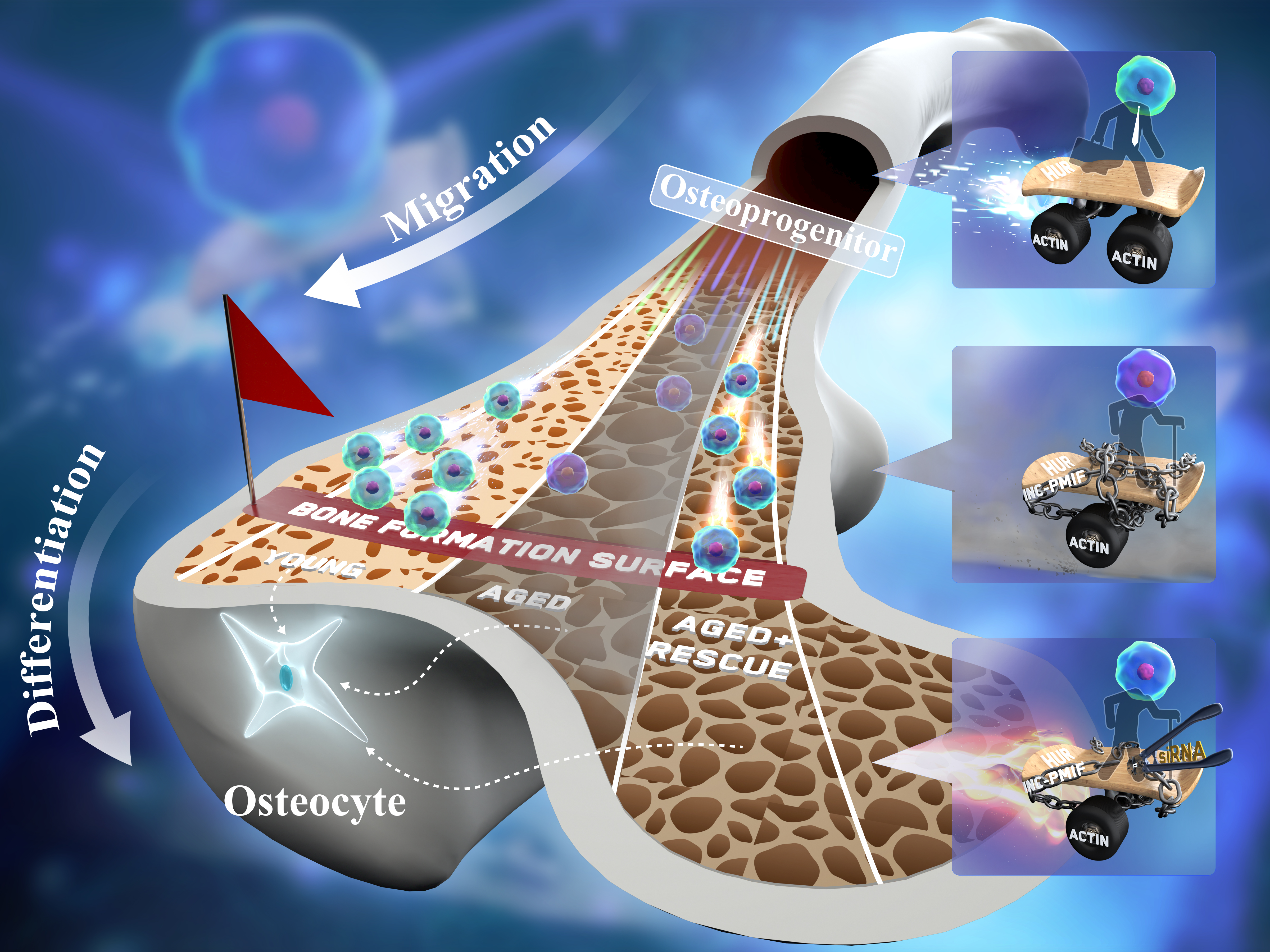 老年骨质疏松中的骨形成减少是一个严重的临床挑战。正如老年人的运动能力伴随着年纪增长而下降,骨祖细胞(OPCs)的运动能力是否也会随着年龄增长而降低?因此从促进细胞迁移角度研究老年骨质疏松是一个很有意义的科学问题。