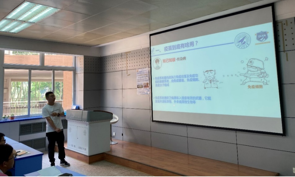参观实验室后,骞爱荣教授以“空间生命科学研究现状”为主题为同学们做了科普讲座,以一个个贴近生活实际的问题将学生引入到奇妙的生命科学之中,引发了学生们极大的求知兴趣。之后,裴佳伟博士生与赖林彬博士生分别就“让我们一起成为‘苗’星人”和“人工智能的医疗应用”为同学们做了科普讲座,两位汇报人有趣的提问和丰富的知识带领学生翱翔于知识的海洋。科普讲座全程中,交流不断,欢笑声不断,学生们求知欲望高涨,学到很多新奇知识。(文/图:张家旗/茹康; 审核:赵媛媛)