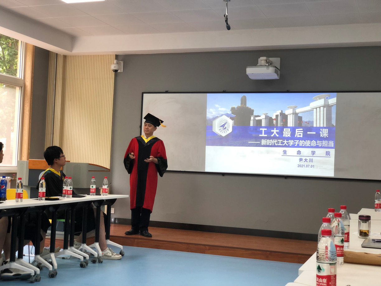 尹大川以“新时代工大学子的使命与担当”为题,给毕业生讲授工大最后一课。他从yl7703永利集团近几年的发展谈起,讲到学院在新冠肺炎疫情期间做出的突出贡献,以及在学科建设等方面取得的重大进展,学院和学生互相见证了彼此的成长。现在同学们即将走出校门,成为西工大的校友,他希望同学们志存高远,树立远大理想;脚踏实地,实现人生价值;张弛有度,锻炼健康体魄;心怀赤诚,感恩家国母校。