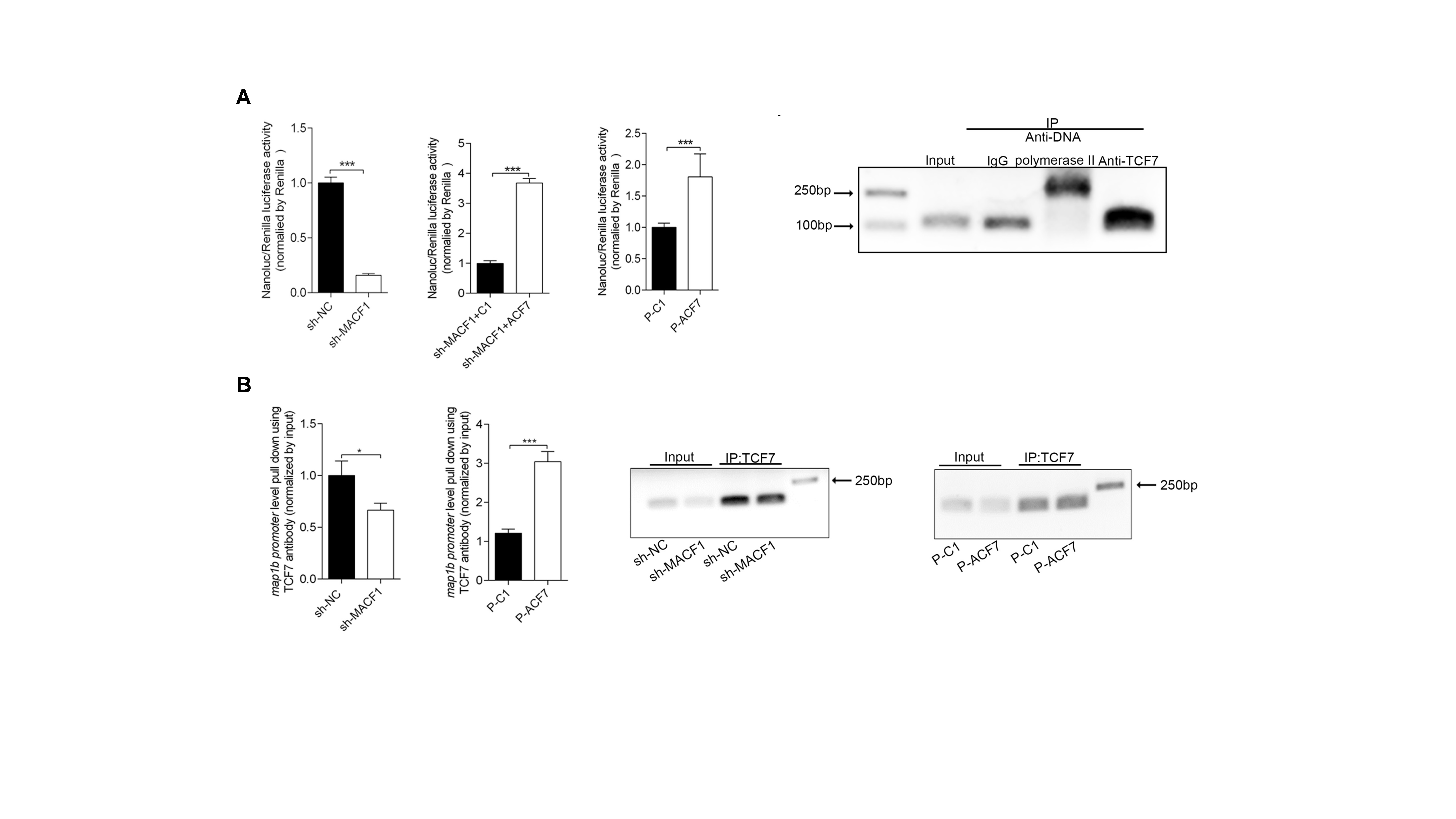 图4 MACF1通过促进TCF7在MAP1B基因启动子区的结合促进MAP1B mRNA的表达 (原文Fig 4)。