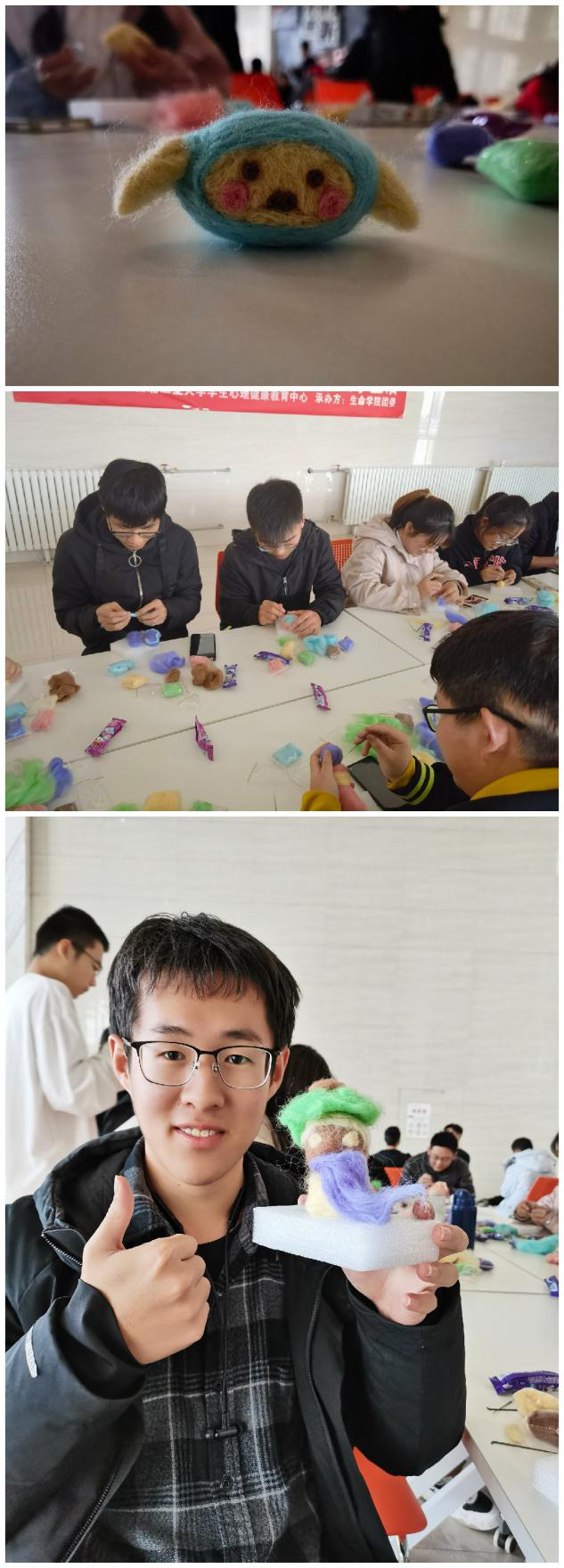 活动中,同学们在主持人的引导下开展一个个游戏项目。有与心理剧疗法相联系的“角色扮演”游戏,灵感取自心理学中沙盘疗法的羊毛毡戳戳乐游戏、对抗“社恐”的数字炸弹游戏,在游戏中获胜或是完成游戏将获得指定数目的“心灵暗语”——一些生理心理学的科普知识,帮助同学们更好的了解心理知识。同学们积极参与了活动,与工作人员互动,现场氛围其乐融融。